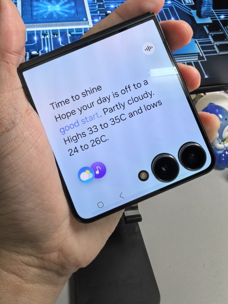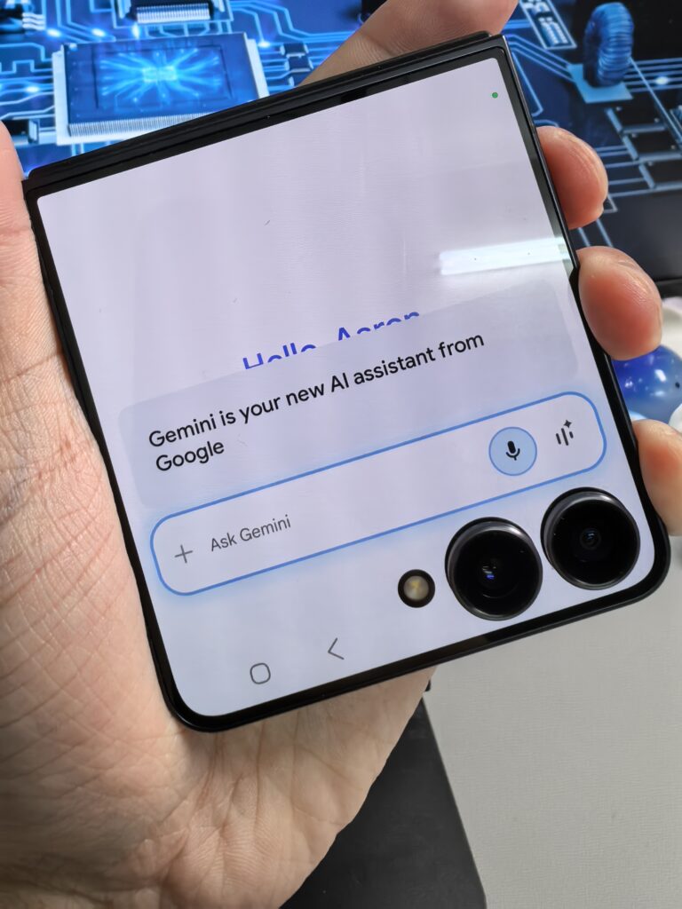 One of the biggest upgrades is how Galaxy AI integrates into the Flip’s cover screen. With Gemini Live, you can use natural voice commands right from the FlexWindow, whether that’s asking questions, getting travel tips, or even sharing what your camera sees for instant insights.
