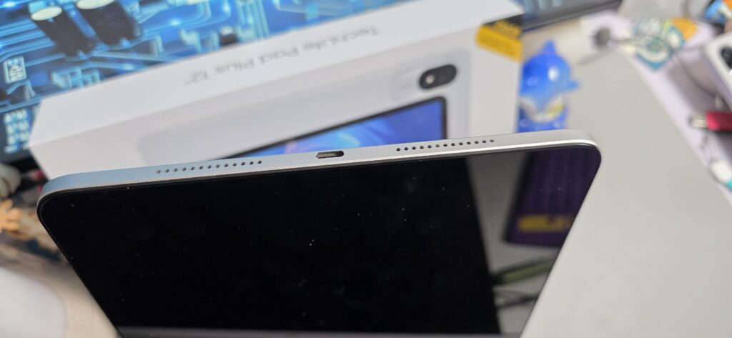 Visually, the Pad Plus 12 looks polished. It carries a straightforward, modern tablet design with thin bezels, a clean rear finish, and a large footprint that sets it apart from 8–10″ tablets.