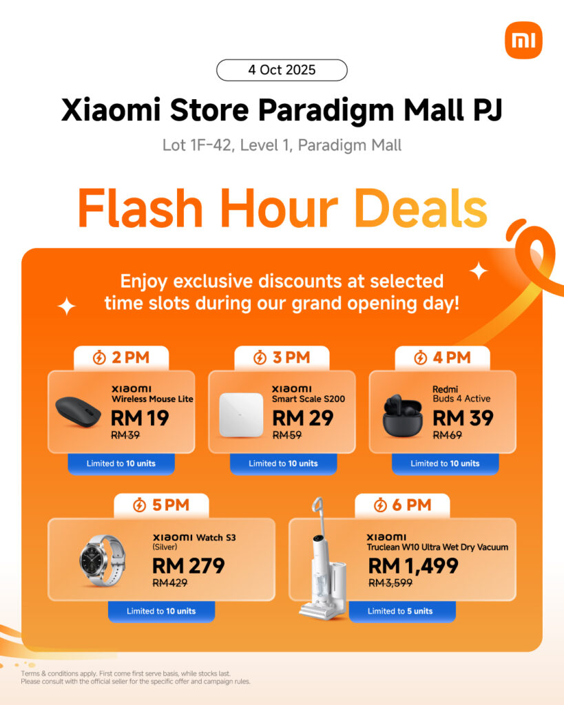 Xiaomi Malaysia is set to open its latest retail outlet at Paradigm Mall, Petaling Jaya on 4 October 2025. The new store strengthens Xiaomi’s mission to make smart living accessible by offering hands-on experiences and a wide range of its products under one roof.