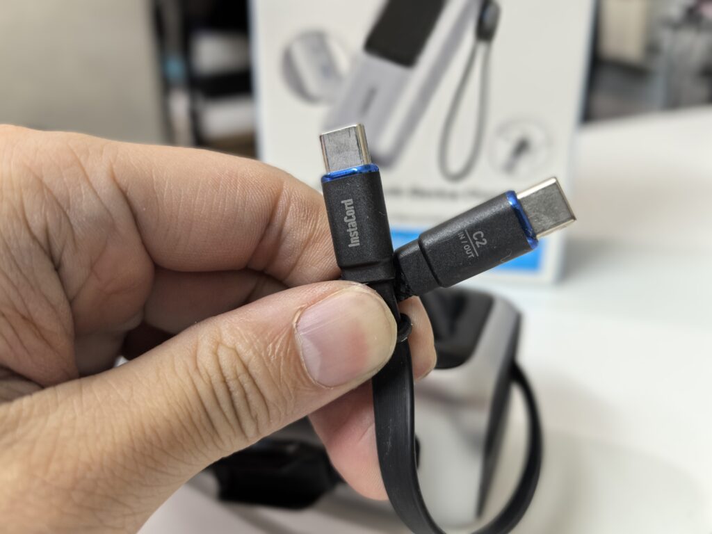 - Built-in + retractable USB-C cables