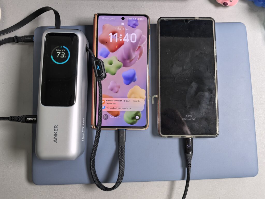 This level of power means the A1695 can handle nearly any portable device from smartphones and tablets to high-power laptops. Charging a laptop through a power bank is usually a hit-or-miss experience, but Anker’s implementation is impressive. Most modern USB-C laptops charge smoothly at high wattage, including ultrabooks, Chromebooks, and even some gaming laptops when idle or under moderate load.