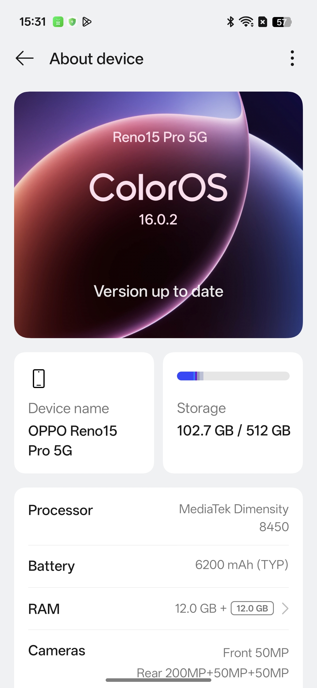 Powering the OPPO Reno15 Pro is the MediaTek Dimensity 8450+, a 4nm chipset that strikes a balance between performance and efficiency. While it may not be a top-tier flagship processor, it is more than capable of handling daily tasks with ease.
