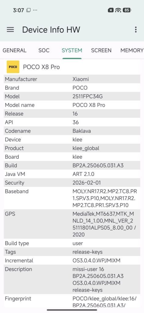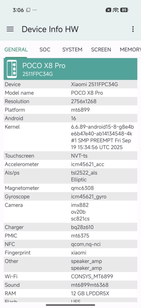 At the heart of the POCO X8 Pro is the Dimensity 8500-Ultra chipset, built on an efficient 4nm process. Combined with 12 GB of LPDDR5X RAM and up to 512GB of UFS 4.1 storage, the phone delivers exceptional performance across a wide range of tasks.